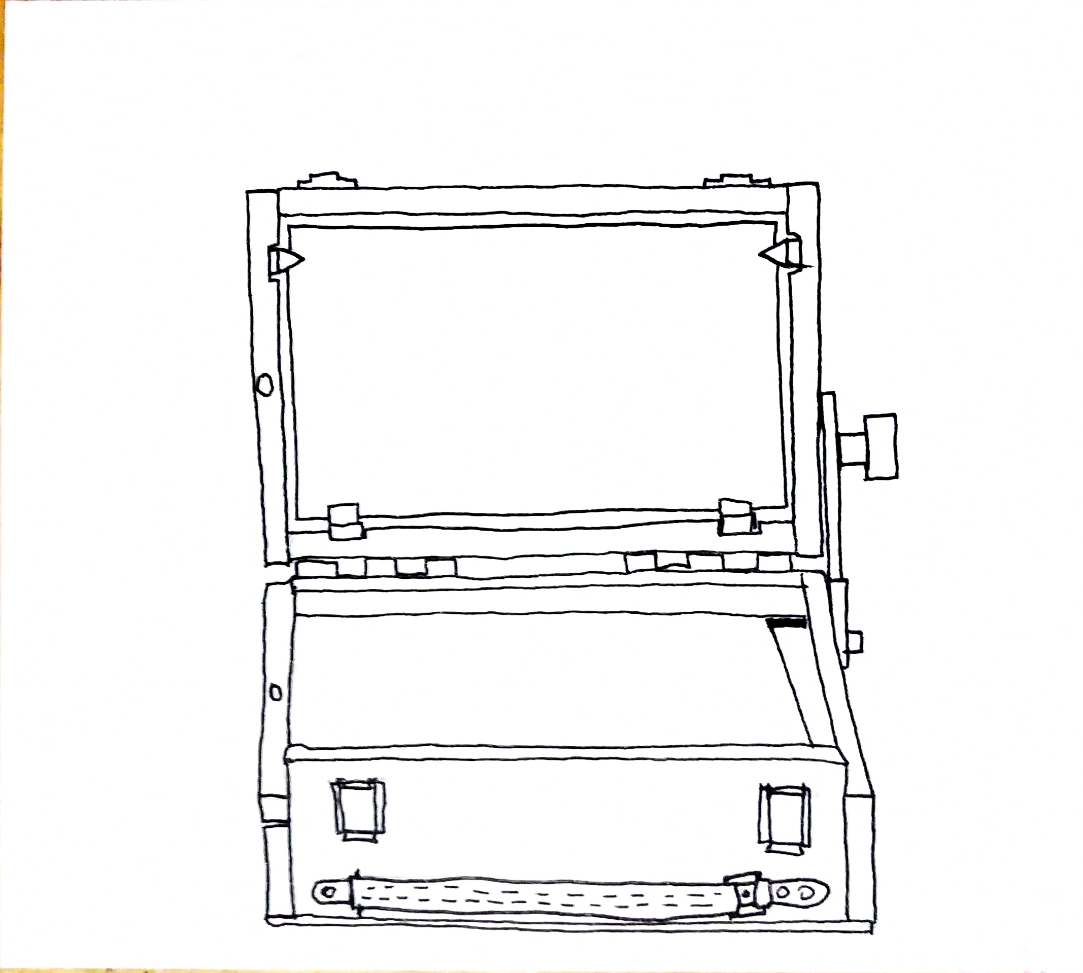 Even more than that, in an advancement of design from an earlier version, you can work wider right off the bat, if perhaps a bit less securely. The bottom canvas holders are shaped like little “W’s”. One valley of the “W” is the main canvas holders and works in conjunction with the four “U” shaped holders in the lid to hold the canvas secure. The other valley of the “W” let’s you work on a support that will rest outside the lid using the outside of the “U’s” as rear holders. This is quite insecure, but means you can work nine by twelve or seven by fourteen in a pinch.
